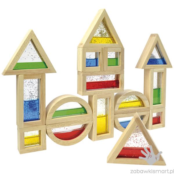 … niezależnie od tego, czy są wykonane z kolorowego, półprzezroczystego szkła akrylowego, odbijających światło pól, czy też mają kolorowe, ruchome wypełnienie, te wszechstronne klocki pobudzają małych budowniczych do wykorzystania wyobraźni i tworzenia niezliczonych dzieł trójwymiarowych konstrukcji. Akrylowe klocki wypełnione brokatem mają szczególnie wysoką wartość edukacyjną. Drewniane krawędzie sprawiają, że wszystkie klocki są wyjątkowo wytrzymałe.