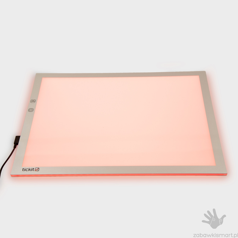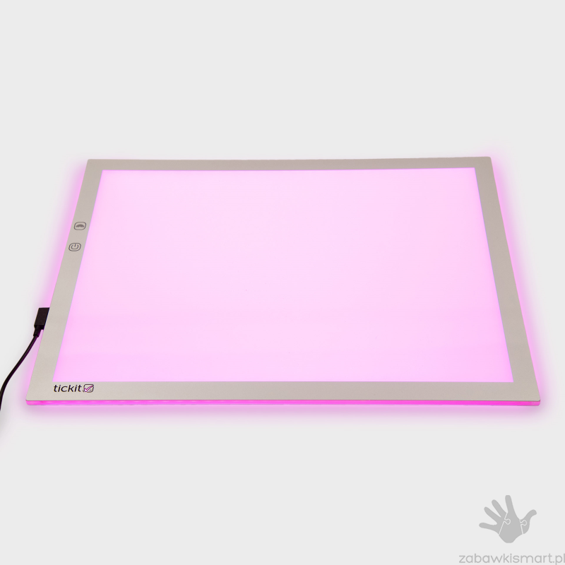 Panel świetlny LED A3 z funkcją zmiany kolorów tickit® to niezbędny element wyposażenia sali do terapii SI zaprojektowany, aby rozbudzać ciekawość i inspirować do eksploracji szerokiej gamy tematów.