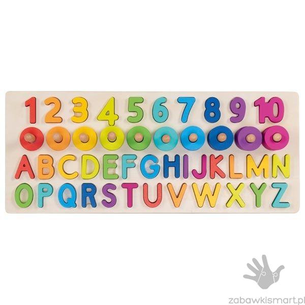 Układanka drewniana Goki- cyferki, literki, krążki