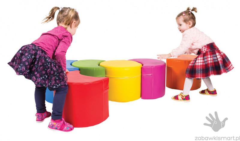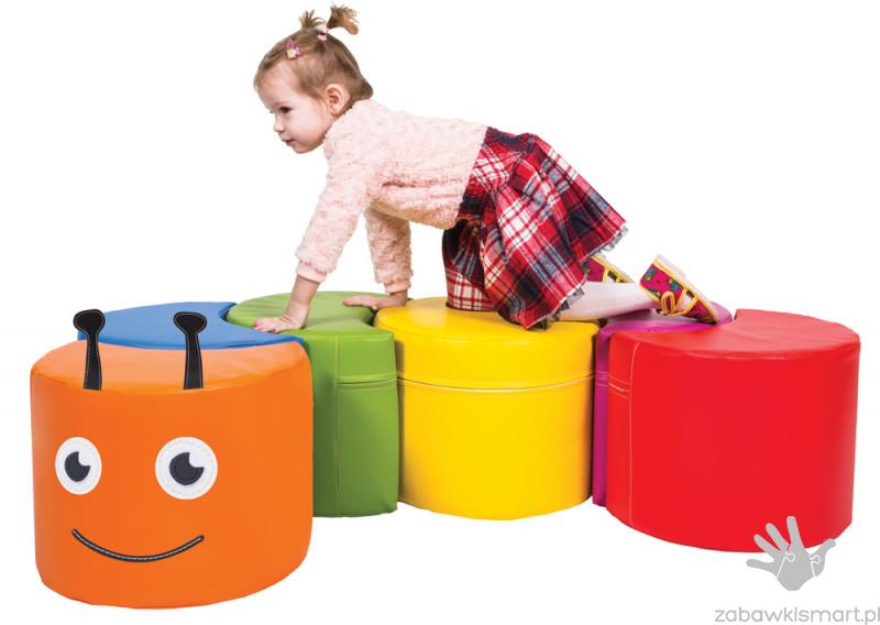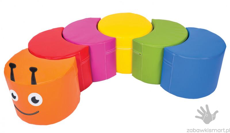Wesoła, kolorowa gąsienica przeznaczona do siedzenia oraz ćwiczeń gimnastycznych. Wypełniona jest wysokiej jakości pianką. Powierzchnia wykonana z materiału imitującego skórę. Gąsienica składa się z 6 kolorowych elementów.
