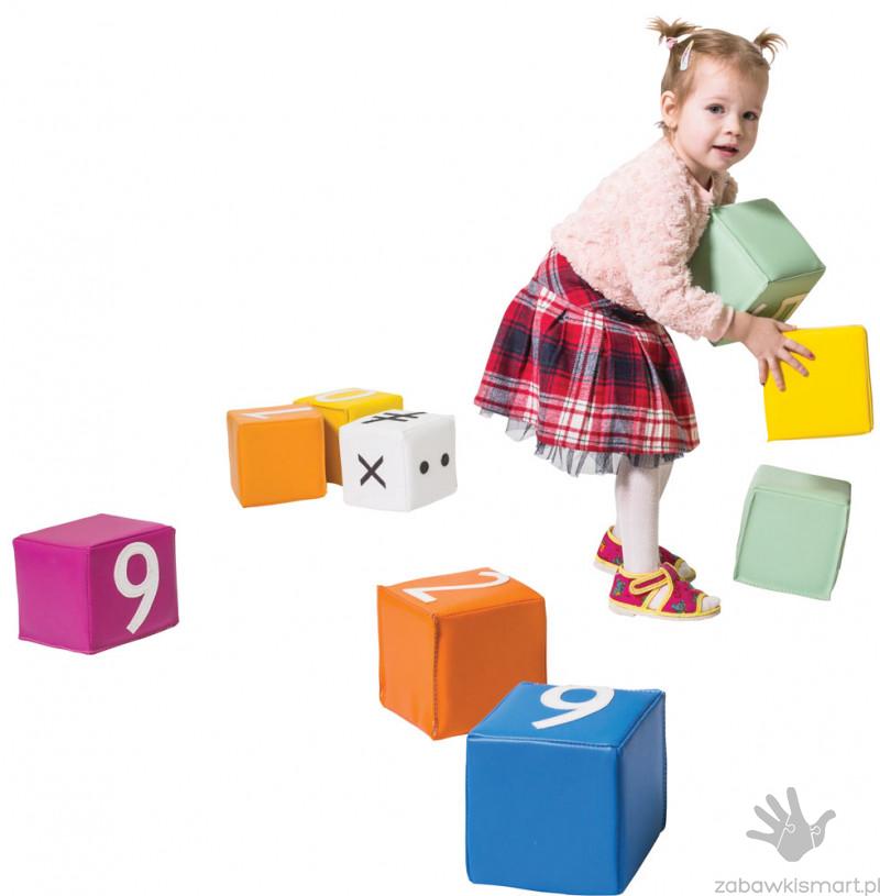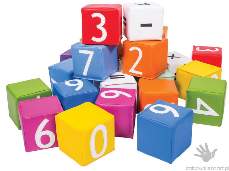 Zestaw 20 kostek z cyframi (2 zestawy cyfr od 0- 9), uzupełnione o 4 kostki ze znakami matematycznymi +, -, x, :, =, ≠. W opakowaniu znajdują się 24 kostki w praktycznym pokrowcu, które idealnie nadają się do nauki podstaw matematyki, ćwiczeń motorycznych oraz innych gier i zabaw dydaktycznych. Każda kostka wypełniona jest wysokiej jakości lekką pianką, powierzchnia wykonana jest z materiału imitującego skórę. Pokrowiec wykonany jest z wytrzymałego materiału.